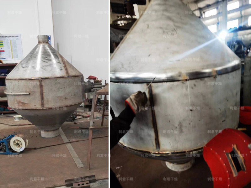 ◎在動力驅(qū)動下,罐體作緩慢旋轉(zhuǎn),罐內(nèi)物料不斷地混合,從而達到強化干燥的目的。