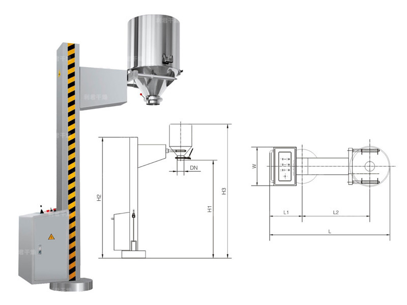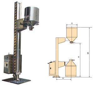 ??TJG 系列固定提升加料機由兩部分組成,即提升機及底座。提升機由機架、液壓提升系統(tǒng)及料門翻轉(zhuǎn)機構(gòu)組成。工作時,先將提升機的料門與料桶扣合,啟動提升操作桿,料門與料桶一起上升,啟動翻轉(zhuǎn)操作桿,料桶即可番轉(zhuǎn)180度,呈底桶向上姿態(tài)并移動到所需位置,利用料門上出料蝶閥,可很容易將物料加入所需的工藝設備中。